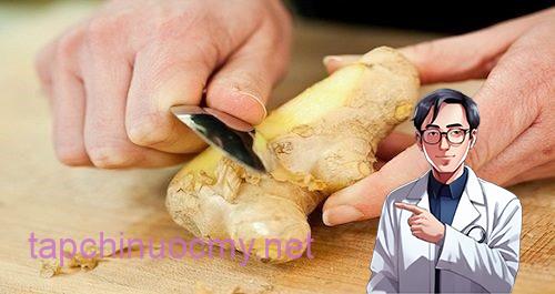 – Bước 1: Rửa sạch gừng rồi để ráo nước sau đó dùng dao gọt lấy vỏ gừng rồi cho vào máy xay lấy nước.