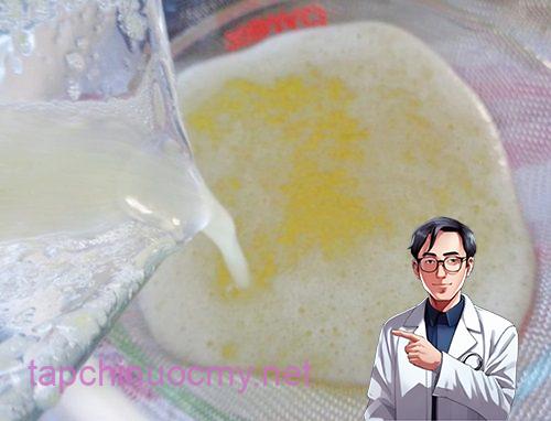 – Bước 4: Đun hỗn hợp với lửa nhỏ cho tới khi hỗn hợp sánh lại.