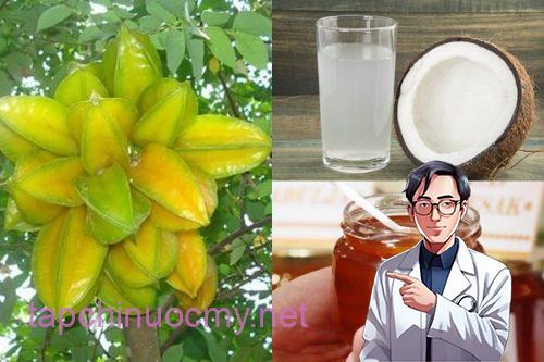 – Cho lượng nước dừa cùng mật ong đã được chuẩn bị ở trên vào bát nước ép khế.