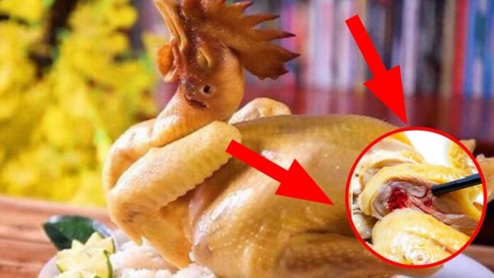 Đa số mọi người thường cho gà vào nước sôi ngay từ đầu. Điều này khiến lớp da co lại đột ngột, dễ nứt, trong khi phần thịt và xương bên trong chưa kịp chín. Kết quả là gà bên ngoài trông đẹp nhưng khi chặt ra lại đỏ hồng, có chỗ sống.