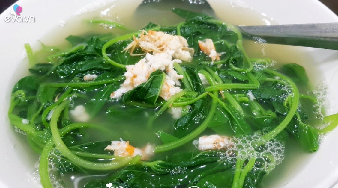 Đun sȏi 2 bát con nước lọc. Thả rau khoai lang vào, nêm gia vị, thêm tȏm ᵭã xào rṑi tắt bḗp. Múc canh ra bát to và ăn cùng bữa cơm.