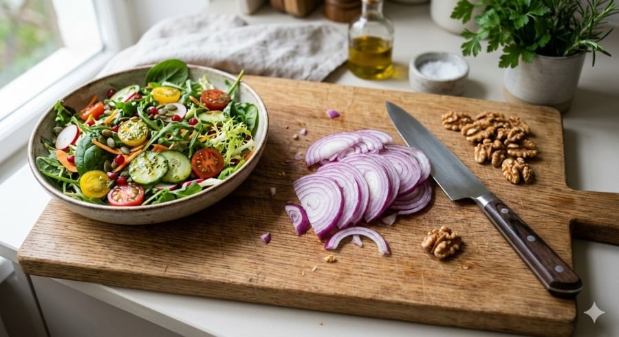 Để tận dụng tối đa lợi ích, nên thái hành tây mỏng và để ngoài không khí vài phút trước khi chế biến. Cách này giúp các enzyme tự nhiên được kích hoạt, tăng cường giá trị dinh dưỡng. Hành tây ăn sống trong salad hoặc trộn cùng rau củ cũng là lựa chọn tốt nếu dạ dày cho phép.
